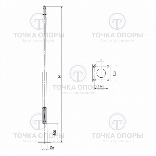Возможно изготовление опор освещения по индивидуальным характеристикам и чертежам заказчика.